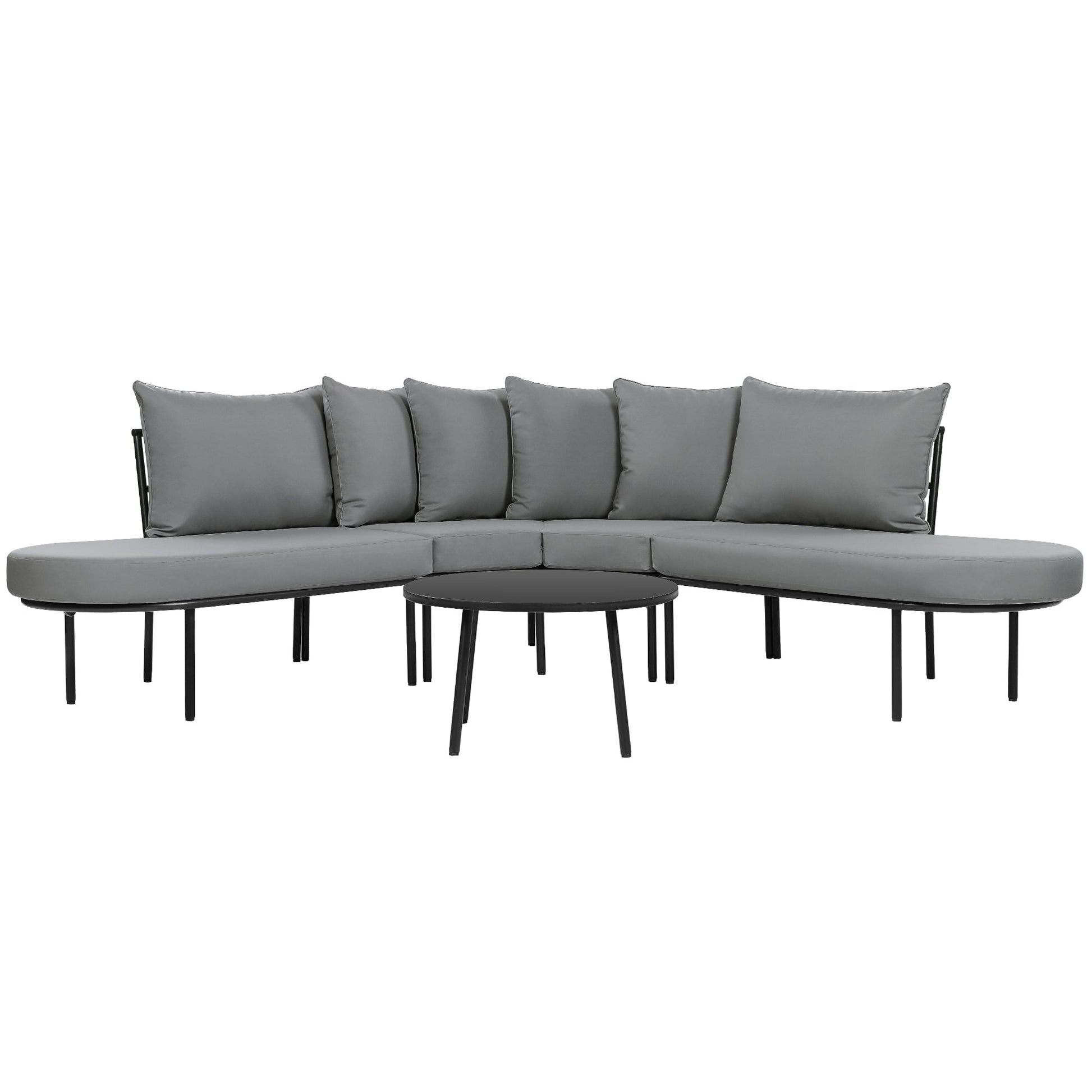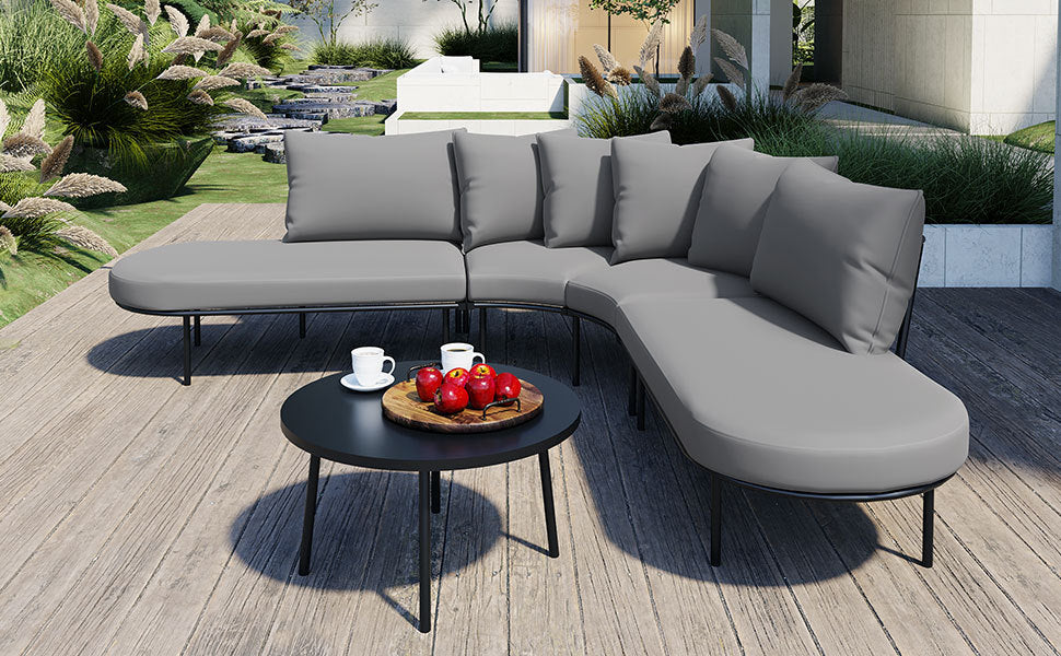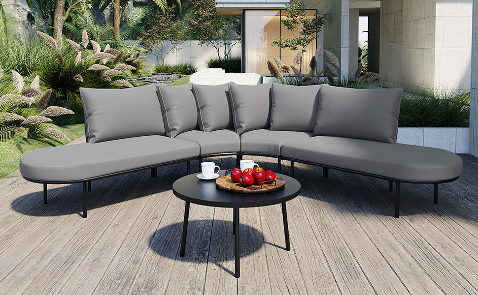 Patio Half- Moon Curved Outdoor Furniture Sofa Set with Coffee Table,