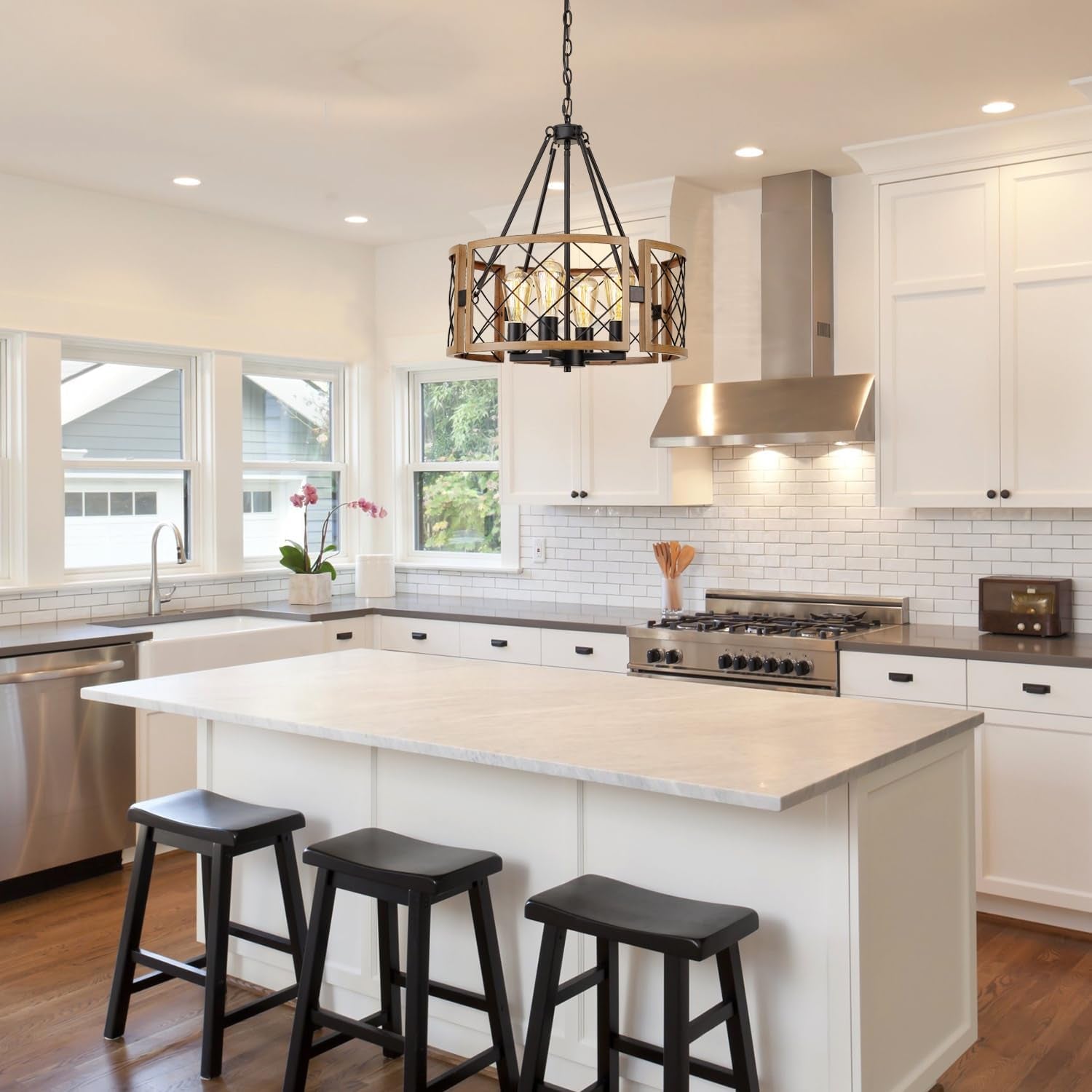 D19'' Farmhouse Chandelier for Dining Room, 4-Light Adjustable Kitchen