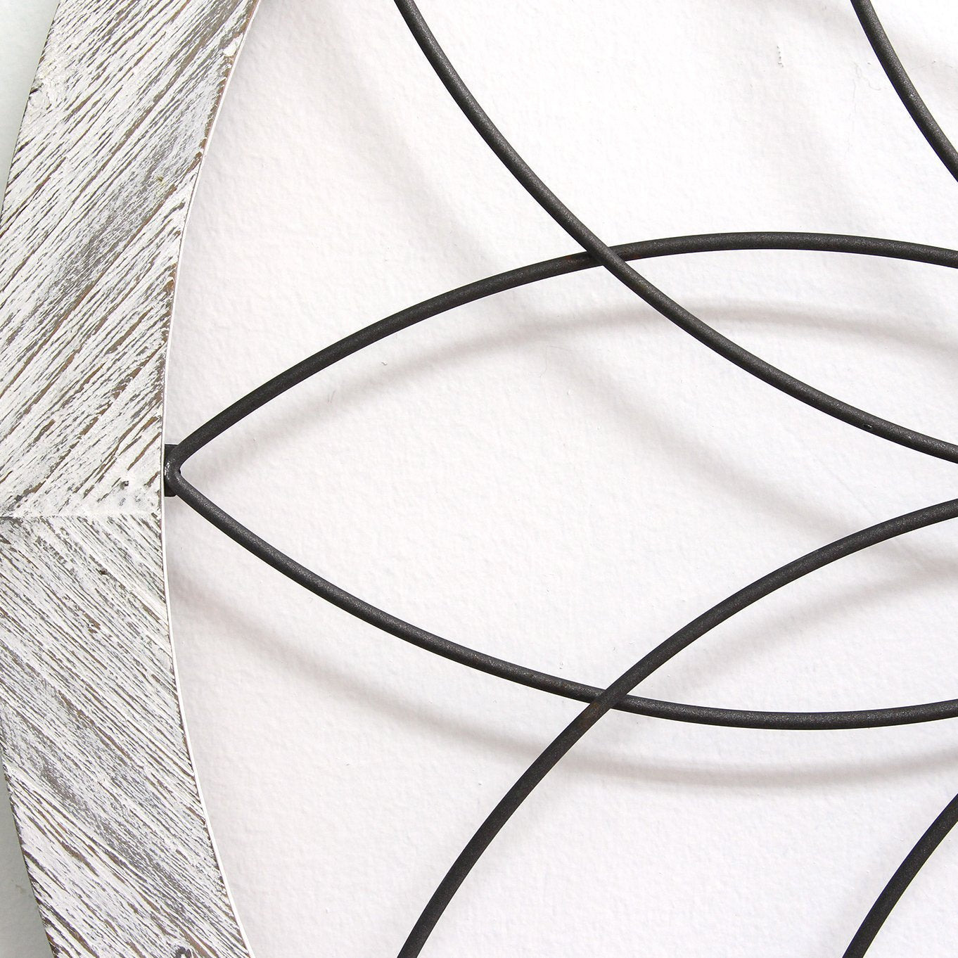 Create an impression that lasts long by making a grand statement in home decor with our flower metal and wood wall decor. This beautiful piece features handcrafted metal flower design surrounded by a round wooden frame distressed white finish to elicit a chic visual vibes in any room. Whether you need a unique wall art in your study, dressing room or living room, this stunning art will perfectly accentuate any room decor. Modern style Metal/MDF/Wood One keyhole hanging method Vertical hanging orientation Wipe clean with damp cloth. It measures 25.75" X 1" X 25.75".