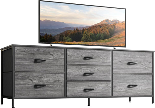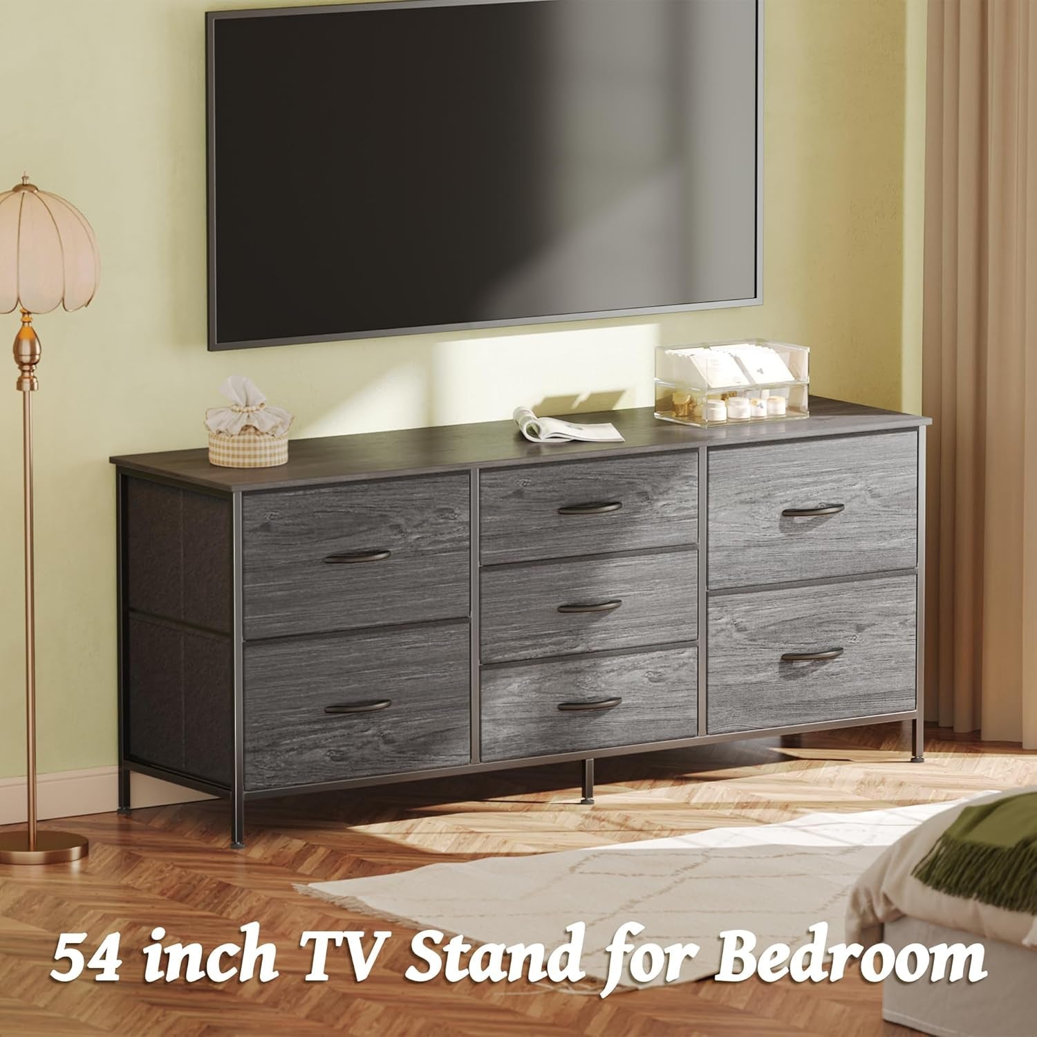 - 【TV Stand for 55 Inches】 With a 54-inch desktop, this bedroom dresser can be doubled as a TV stand with storage fabric drawers that fits screens up to 43/55/60 inches. Perfect for movie nights, you can enjoy your favorite films with everything neatly stored in the 7 drawers