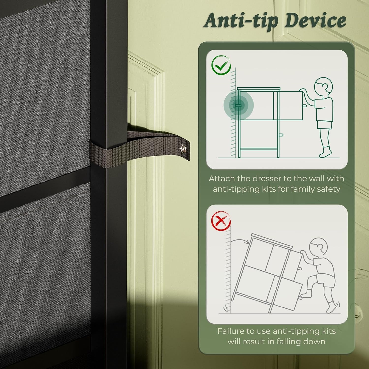- 【Various Styles】 Available in flexible colours to match any home decor, choose from dark grey, white, charcoal black wood grain print, and rustic brown. The anti-tip device and adjustable feet ensure stability, making this nursery dresser safe and sturdy for any room
