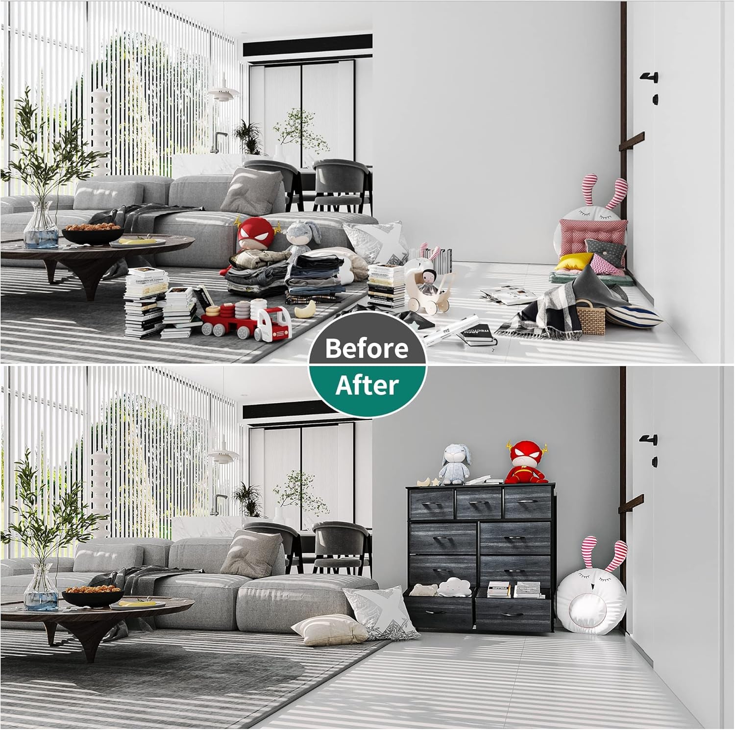 - 9-DRAWER DRESSER- The chest of drawers features 9 foldable deep drawers and easy-to-pull handles; The non-woven synthetic fabric is easy to care
