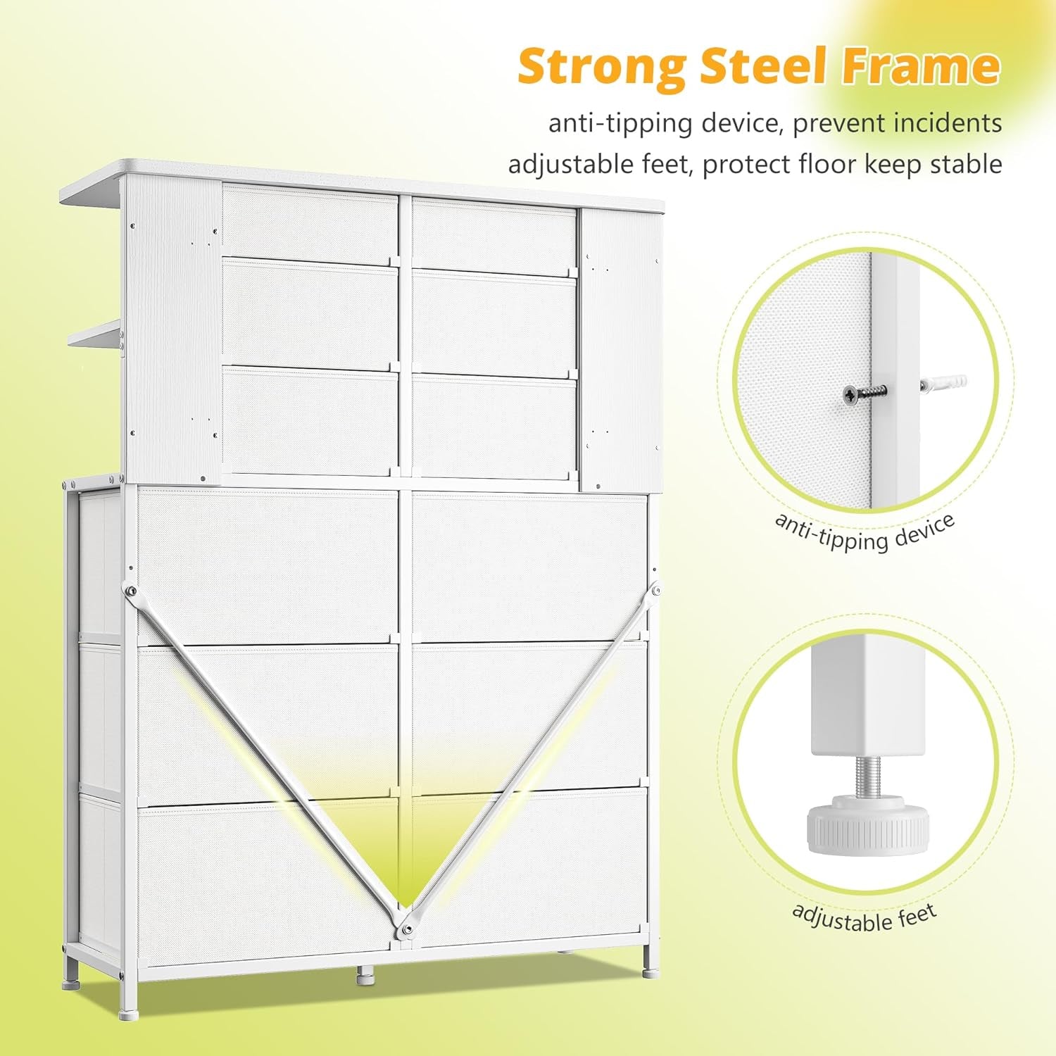 - Durable Construction: Made with a robust steel frame and reinforced with an X-cross bar, this dresser is designed for stability and longevity, ensuring it withstands daily use.