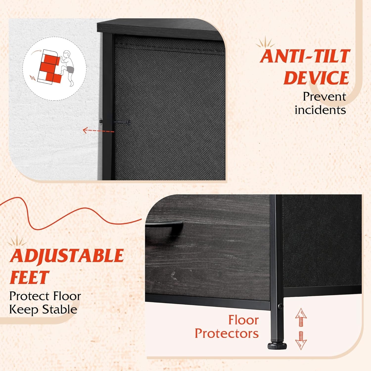 - Space-saving Design: This fabric dresser for bedroom does not take up space and provides more space for your storage needs; is ideal for wherever you want to keep tidy and organized, such as bedroom, closet, living room, hallway and playrooms.